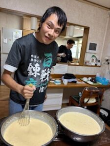 タコ焼きの準備から手伝ってくれました!!卵を割ったり、サラダを盛りつけたり、たこ焼きの粉を混ぜたり、楽しそうに準備をしてくれました☺️
