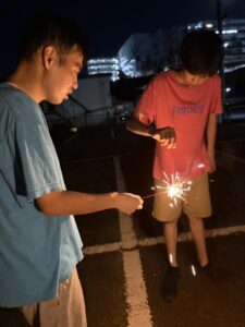 最後は皆さんお待ちかねの花火!!すっかり暗くなって、花火がとってもきれいに見えました!!