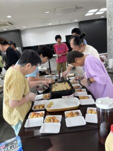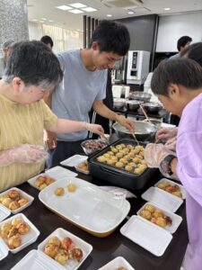 続いて、サロンへ移動し、みんなでたこ焼きを焼きました~