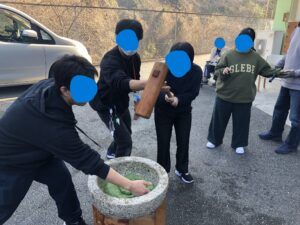 「杵が重い~💦」「難しいな~💦」との声もありましたが、みんなで協力しながら頑張りました。