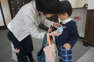 登園時には、お母さんにコサージュをつけてもらいました🌸