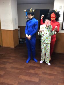 毎年鬼は職員が担うのですが、今年は利用者の有志による鬼となりました👹