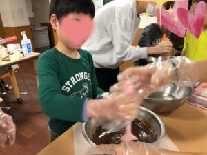 「職員と一緒に生チョコを作ったよ~🍫めっちゃおいしかってん😋」と笑顔で伝えてくれました