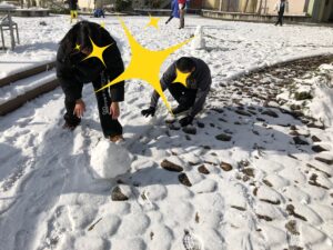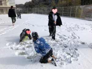 職員と一緒に園庭に出て、雪合戦をしたり、雪だるまを作ったり、雪まみれになるくらい転がったり、、、稀少な雪の日を満喫することができました🥰